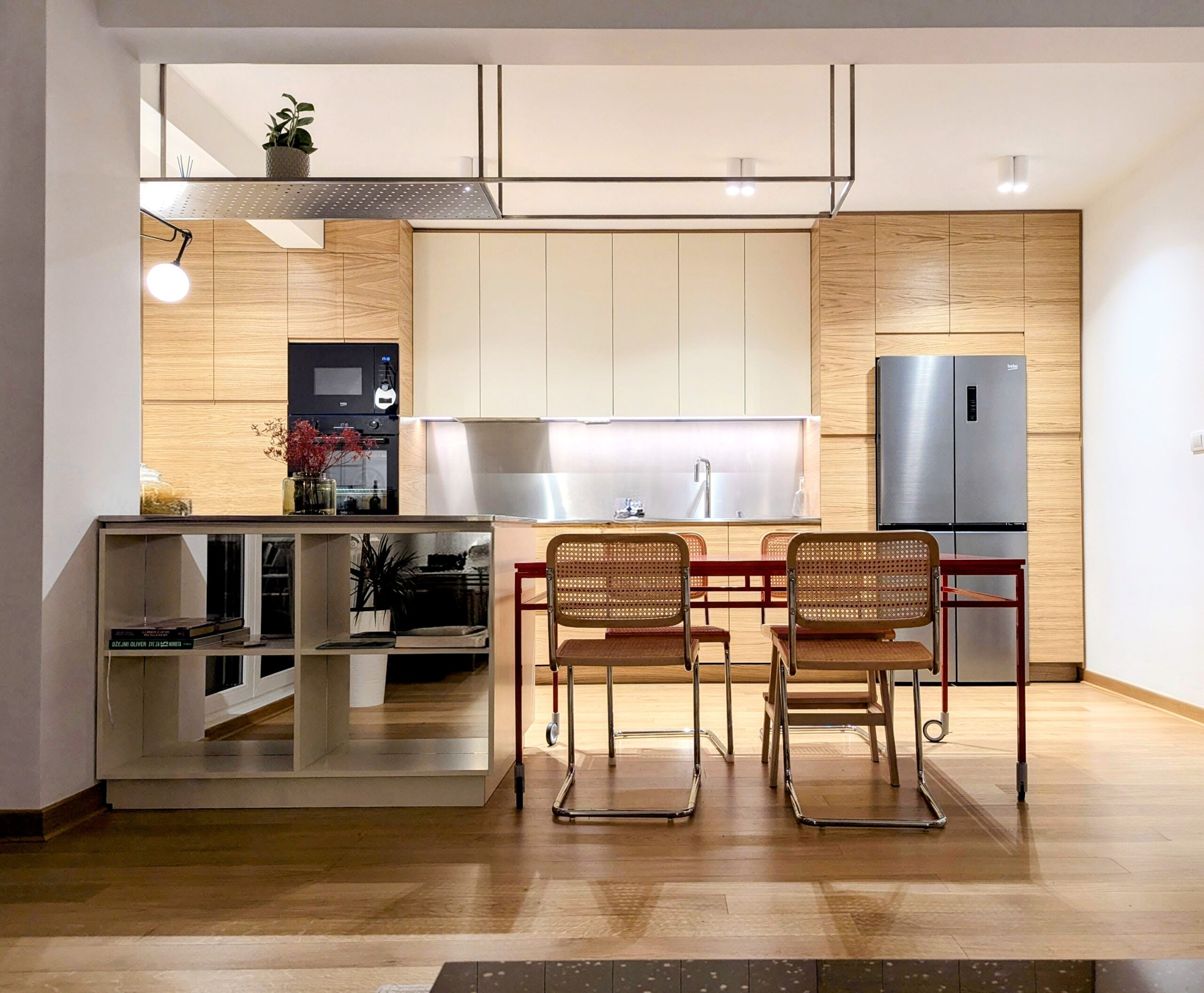 Ovaj projekat enterijera stana u Zemunu predstavlja spoj savremenog dizajna, funkcionalnosti i personalizovanih rešenja, kreiranih u potpunosti po meri. Kroz pažljivo planiranje i izbor pločastih materijala, enterijer je oblikovan tako da odgovara dinamičnom životnom stilu mladog para sa detetom, uz akcenat na udobnost, jednostavnost korišćenja i estetsku ujednačenost celog prostora.